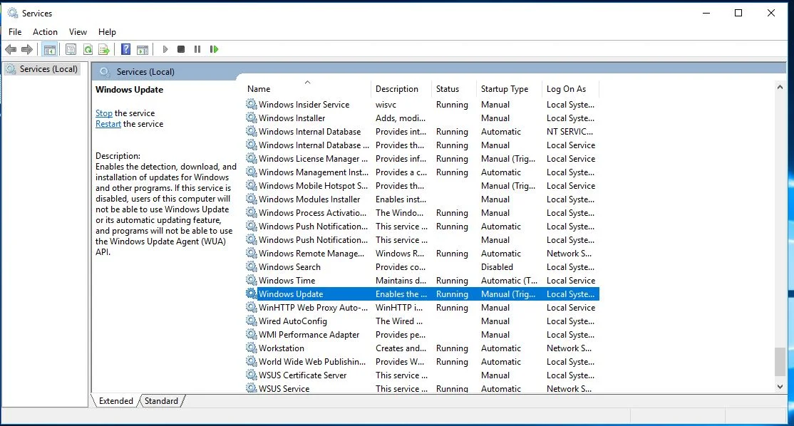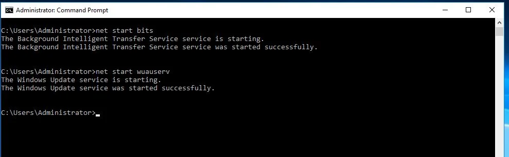 Hierzu stoppen wir zuerst den Windows Update Service und den Background Intelligent Transfer Service.