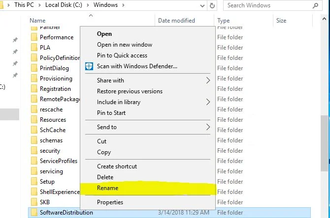 rename c:\windows\SoftwareDistribution SoftwareDistribution.old
