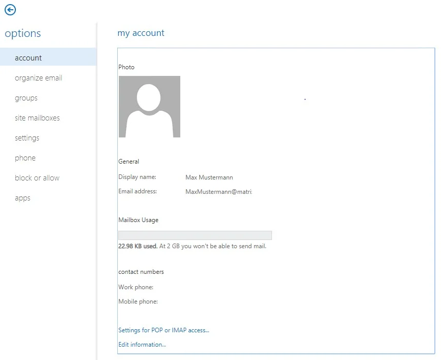 Bei der grafischen Oberfläche unter Exchange 2016 bzw. Office 365 funktioniert die Konfiguration ähnlich, allerdings unterscheiden sich die Begrifflichkeiten ein wenig und es gibt beispielsweise keine Kategorieunterteilung der Kontoinformationen mehr.