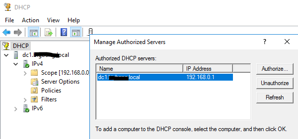 Server Manager -> Tools -> DHCP -> Action Menu -> Manage Authorized Servers.