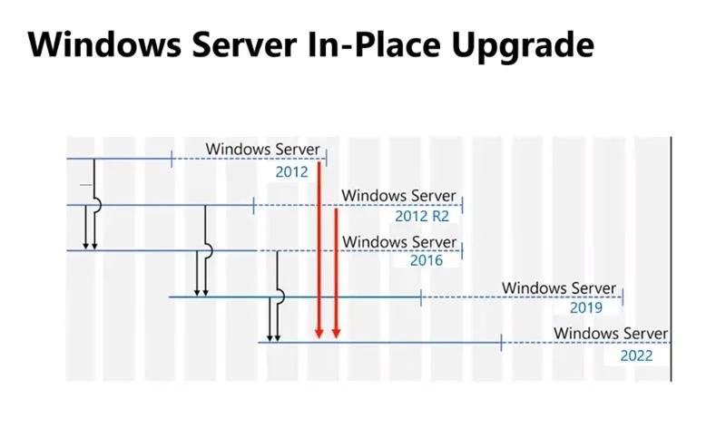 Eine große Änderung wurde am Upgrade Prozess durchgeführt. Statt dem bekannten n-2 Upgrade Muster ist es nun möglich, ein In-Place Upgrade über vier Editionen durchzuführen, d.h. in einem n-4 Muster das Upgrade durchzuführen. Sollte der Windows Server 2012 allerdings eine ebenso alte Hardware besitzen, ist ein In-Place Upgrade wenig sinnig. Hier sollte auf eine Side by Side Migration zurückgegriffen werden.