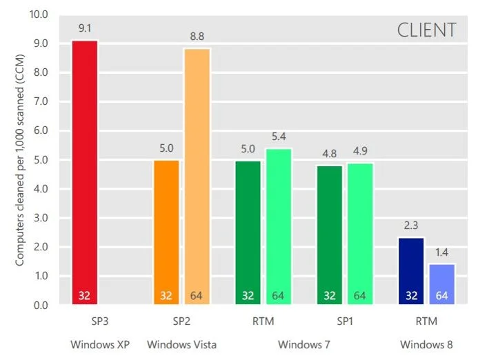 Das Risiko, dass für Windows XP weitere Sicherheitslücken gefunden und ausgenutzt werden ist relativ groß. Windows XP ist schon jetzt das unsicherste Betriebssystem von Microsoft, wie der Microsoft Security Intelligence Report Vol. 15 nahelegt: