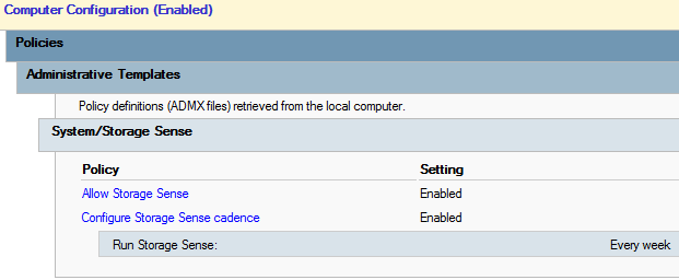 Um Storage Sense zu aktivieren, muss die Richtlinie Allow Storage Sense auf Enabled gesetzt werden.